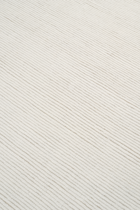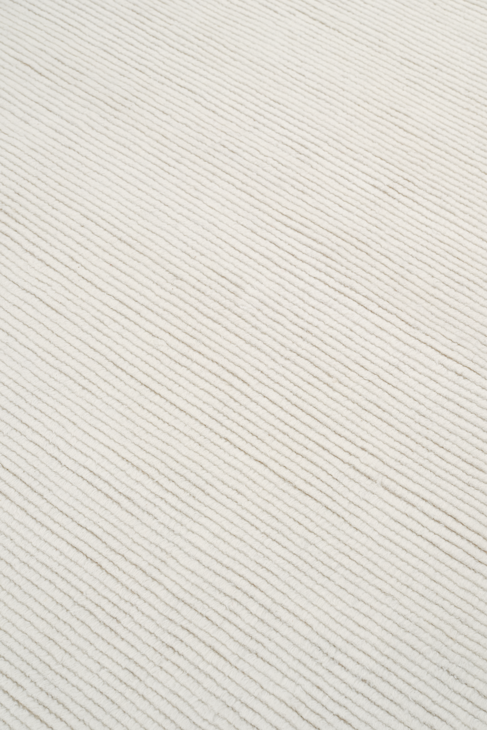 Handwoven in undyed New Zealand and Ghazni wool, The Ridge Ivory Rug showcases a versatile porcelain tone with organic variations in colour. Layering a flatwoven base with soft rows of cut pile, it captures the rising contours of natural landscapes with subtle linear ridges; alternating textures and the luxuriously shaggy pile height create sculptural softness and tactile depth.