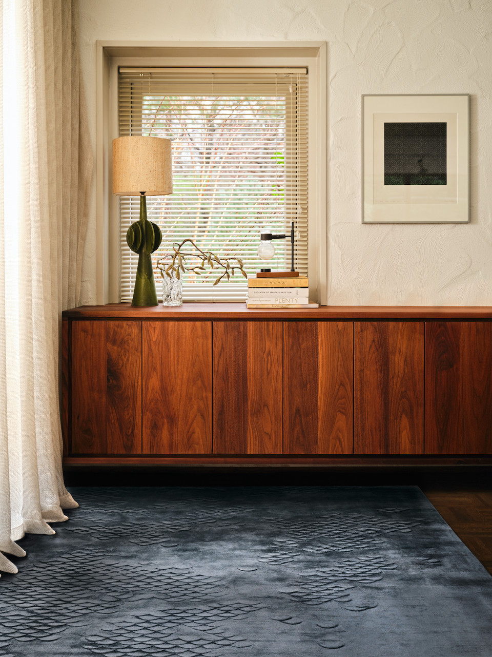 Helen Amy Murray is recognised for her hand-crafted creations that take inspiration from nature and form to create surface relief within textiles. Helen had previously applied the techniques to leather and suede but The Rug Company collaboration successfully translated Helen’s abstract designs into innovative, hand carved, hand knotted rugs. The results are truly ground-breaking and Helen’s Peony rug was awarded the Homes & Gardens award 2008 and the BIDA Award at Decorex Fair in the same year.
